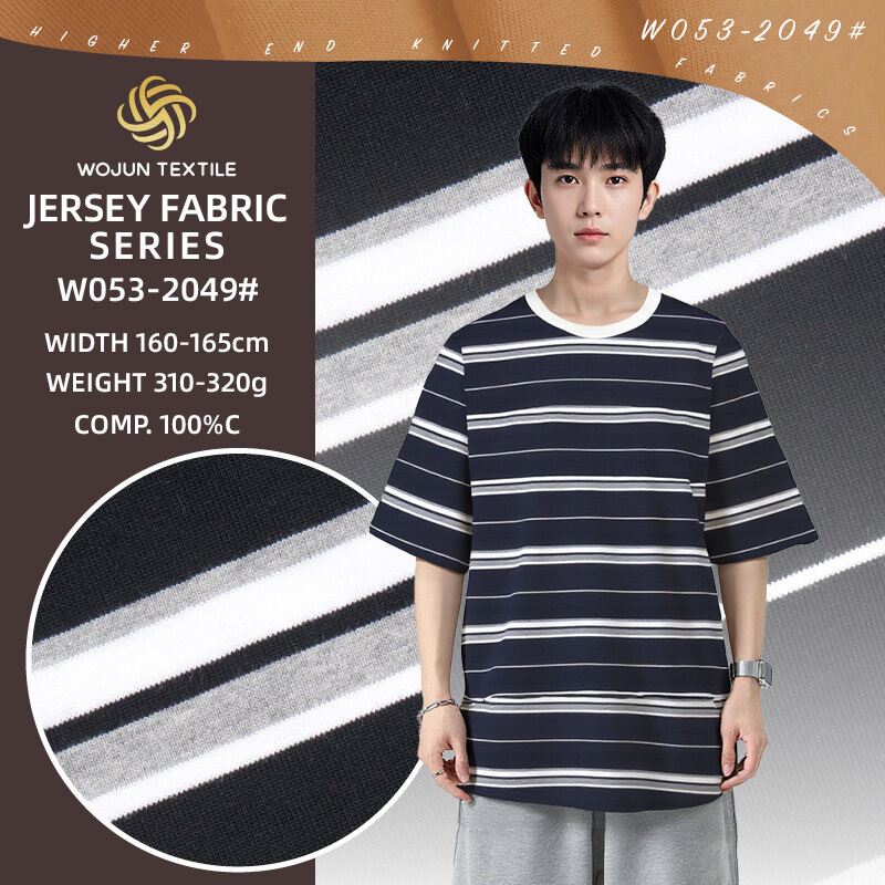 Foshan wojun textile co., ltd является производителем среднего класса, высокого класса вязаных тканей в более чем 100 комплектов круговых вязаных машин мощностью более 8000 тонн в год с заводом 10,000 м2 и склад 3000 м2У нас более 25 лет опыта в производстве вязаной ткани.полосатая тканьМы очень заботимся о качестве тканей.